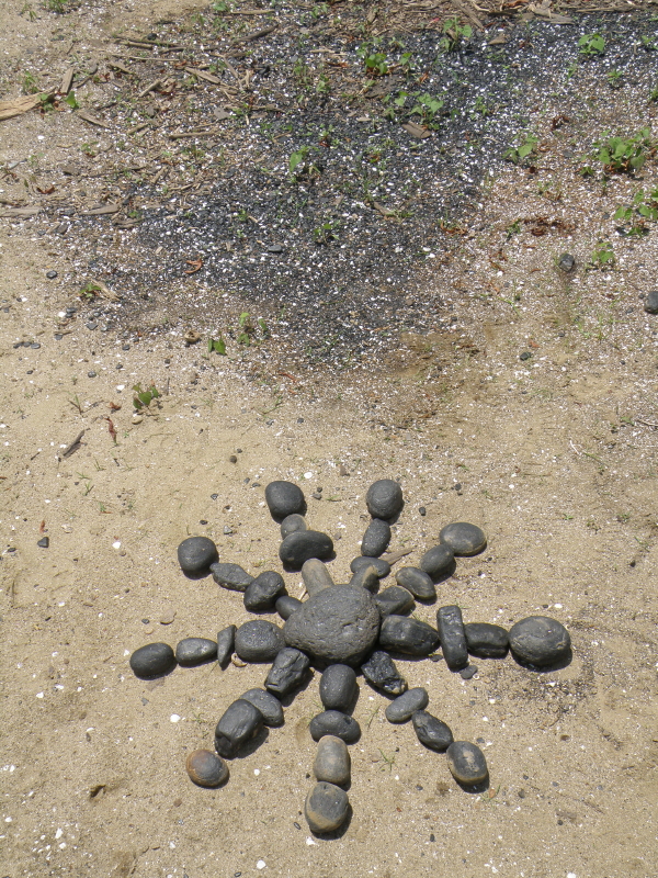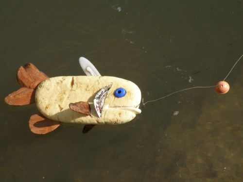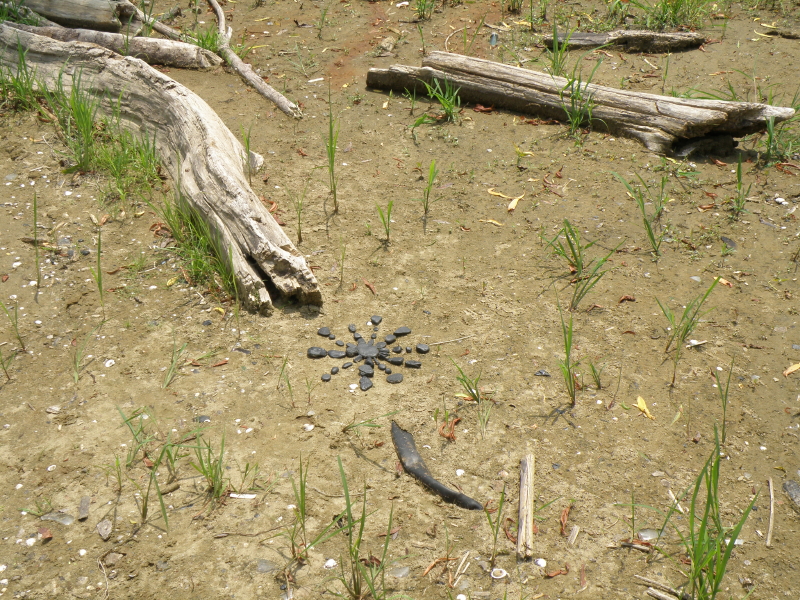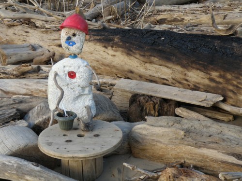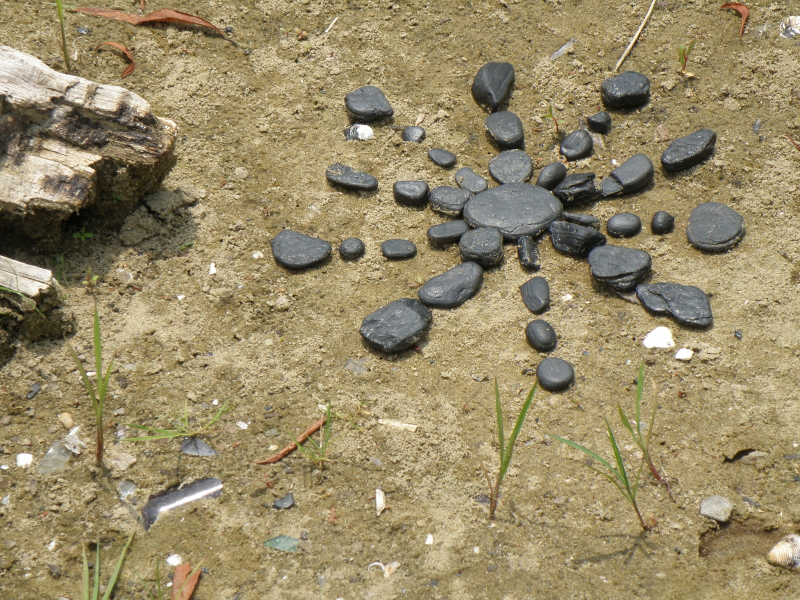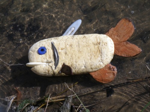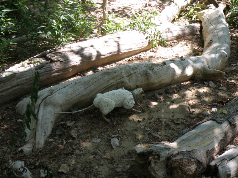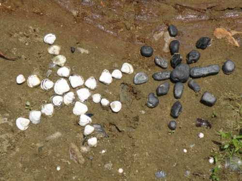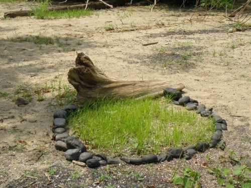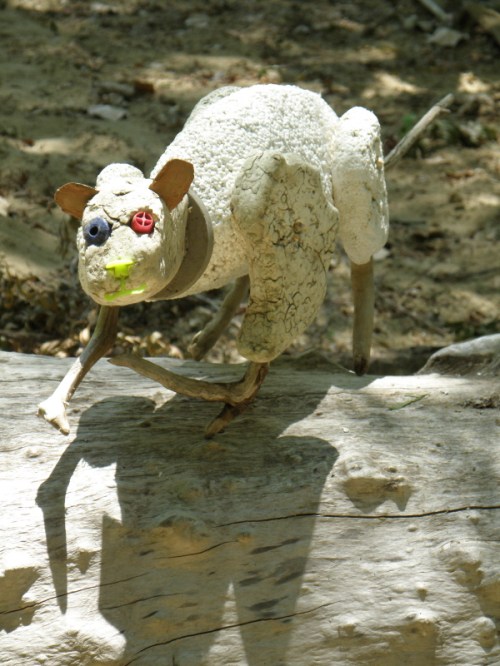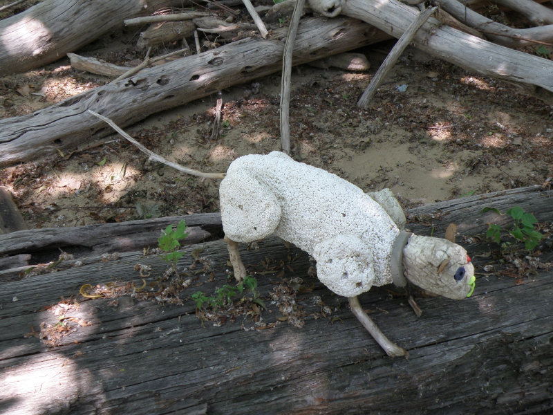 Some of the items on the panel like the coyote skull …I’ve had for many years while other pieces like the plastic Native American came to light a month a go. I had to include at least one doll in this assemblage because outside of toy balls…dolls are the most frequently found toy I come across at the Falls of the Ohio. I sprinkled in enough polished coal, walnuts, and mussel shells to keep it lively. I’m looking forward to seeing all the finished displays sometime soon. I’m sure this panel will look completely different in its case and in the context of the other exhibits. Looking forward to getting back outside to the river sometime soon. I still have a trip to Richmond, KY on the schedule to pick up my art that I have on display there . For now, I will content myself with this picture taken in the park several weeks a go. Thanks for dropping by!