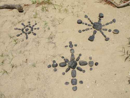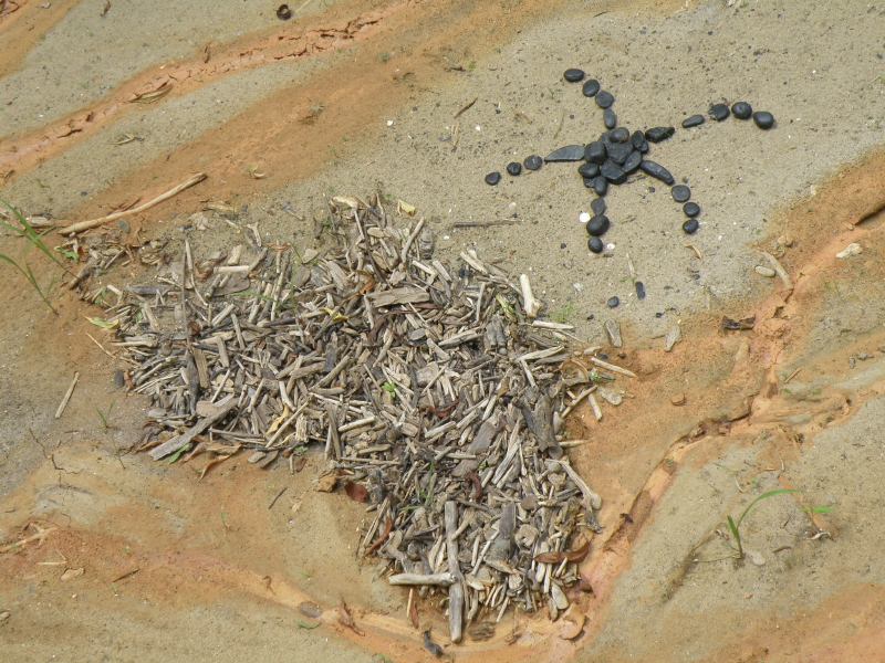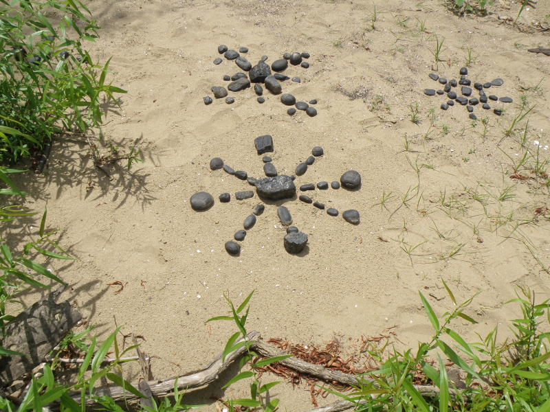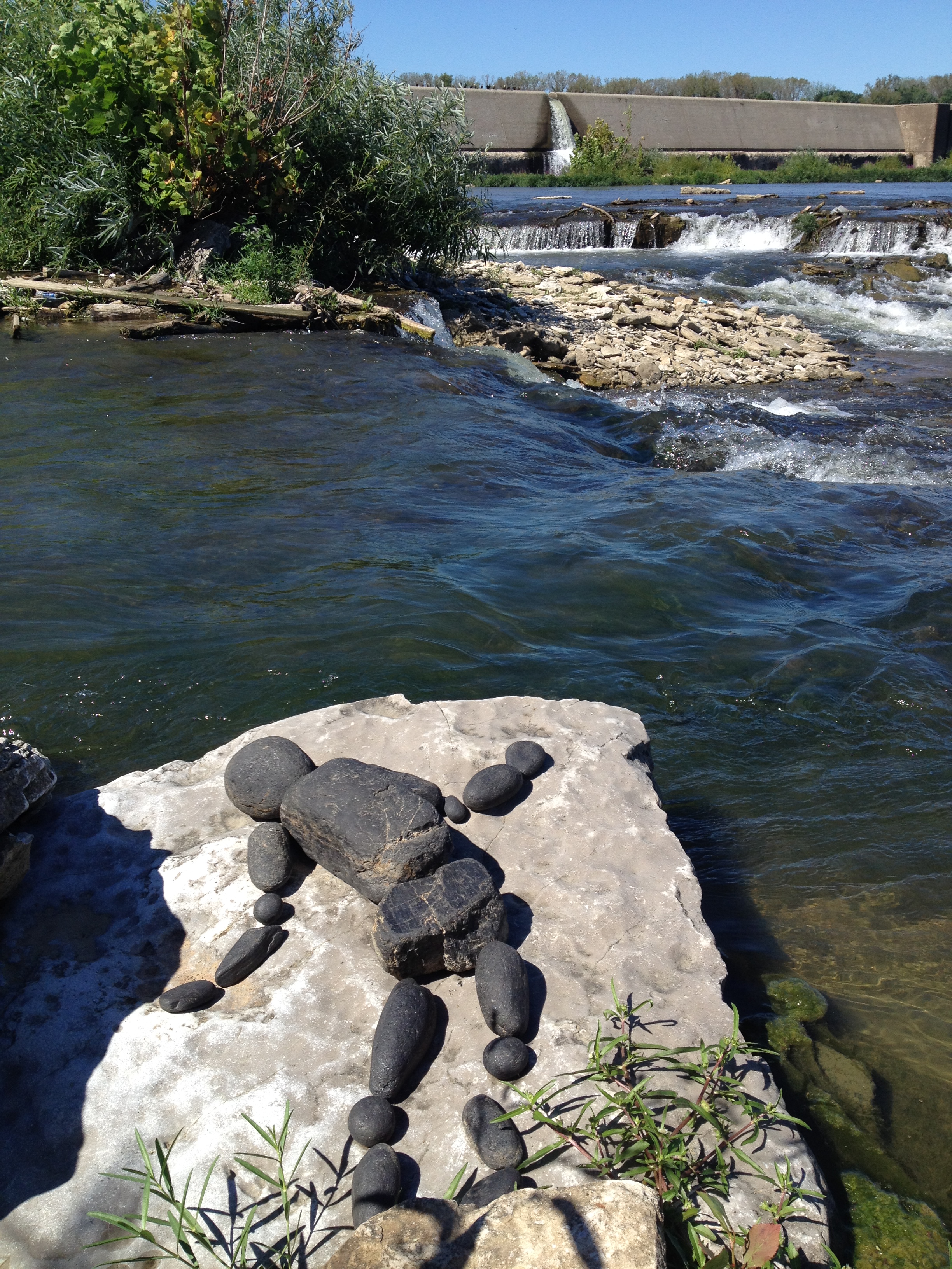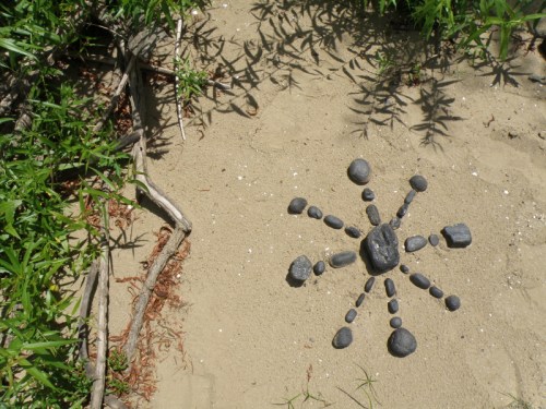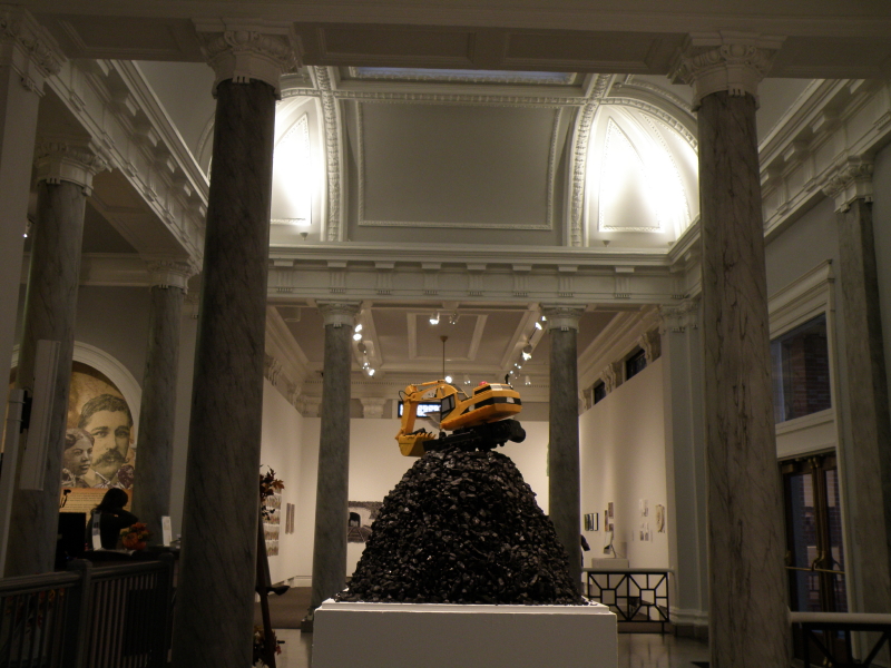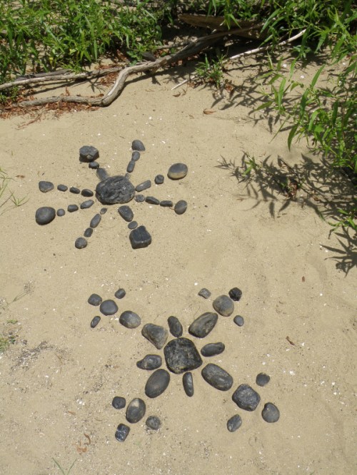 Some of the items on the panel like the coyote skull …I’ve had for many years while other pieces like the plastic Native American came to light a month a go. I had to include at least one doll in this assemblage because outside of toy balls…dolls are the most frequently found toy I come across at the Falls of the Ohio. I sprinkled in enough polished coal, walnuts, and mussel shells to keep it lively. I’m looking forward to seeing all the finished displays sometime soon. I’m sure this panel will look completely different in its case and in the context of the other exhibits. Looking forward to getting back outside to the river sometime soon. I still have a trip to Richmond, KY on the schedule to pick up my art that I have on display there . For now, I will content myself with this picture taken in the park several weeks a go. Thanks for dropping by!