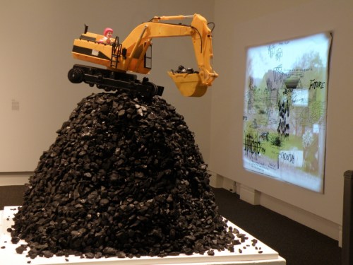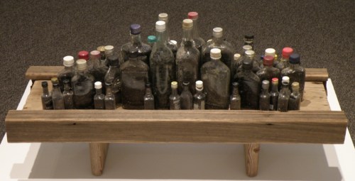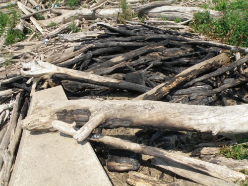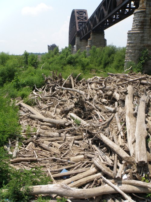 There is a whole list of things you can find on this panel. On the base level, it is a good mix of the driftwood, polystyrene, glass, coal, aluminum, and other plastics found in the Ohio River. Here are a few details to give you a better look.