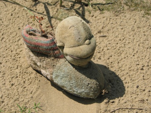 June is already shaping up to be a rather interesting month at the Falls of the Ohio and I will be interacting with the park in some different ways than I usually do. More about that as the month progresses. For now, I will end with one more image of my flip-flops piece as I left it upon this ancient landscape. See you later!