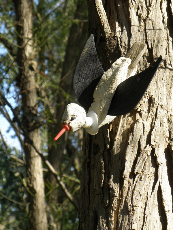 The Cumberland Mockingbird seemed to be able to “read” the air and wind currents around structures like trees and high river banks. I observed it daringly flying and diving very near objects in its pursuit of an insectivorous meal. I saw it chasing another Falls of the Ohio specialty, the Eastern-eyed Click Beetle (Alaus oculatus ). This is the largest member of the click beetle family and can get 2 1/2 inches long. It is said that its cryptic coloring is meant to mimic bird droppings. As it happened this beetle was able to escape becoming the Cumberland Mockingbird’s lunch by hiding under some loose tree bark.