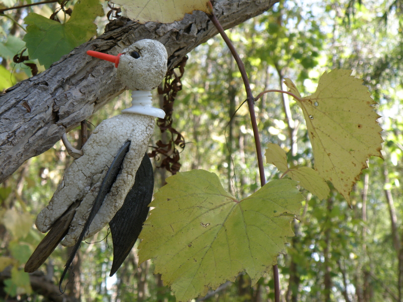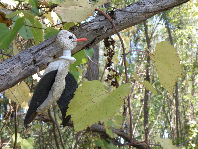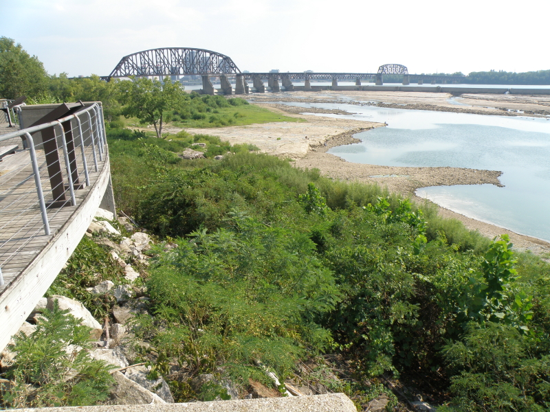 There was a movement low to the ground and a parting of vegetation when a dingy white bird emerged onto the trail in front of me. It puffed its body up and displayed its tail feathers in a showy fan. A few wiry blue feathers on his head forms a crest that moves and down with the hopping dancing motion this species requires for courtship. With a certain amount of fanfare, my first ever “Dodo of the Ohio” ( Pseudo dodo kentuckiana ) let itself be known that it was looking for companionship. I had also found it in the context of a flowering and fruiting Passion flower vine ( Passiflora ) growing over the sand. A pair of round, green fruits seemed to be the object of the dodo’s attention. Our dodo is not at all related to the extinct species, but it is far from being a common bird. Fortunately, it can fly, albeit weakly. This at least keeps it off the ground while it sleeps at night. I watched the dodo for several more minutes before it flew off. The chance meeting of these two exotics was an amazing and unforgettable happening that helped make July an incredible month. See you again sometime soon from the Falls of the Ohio.