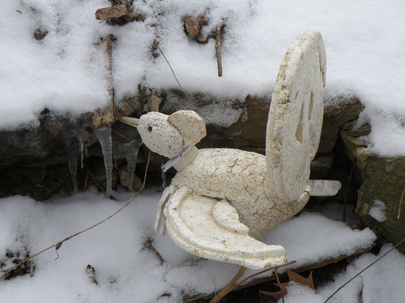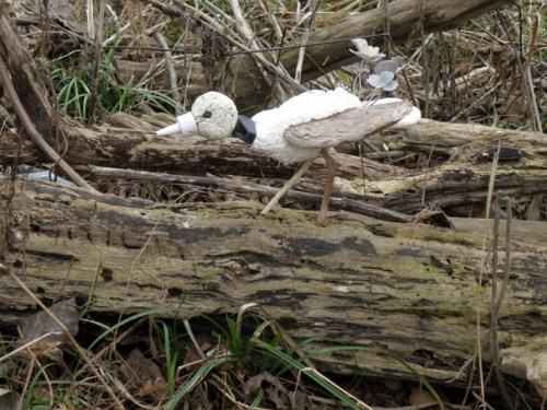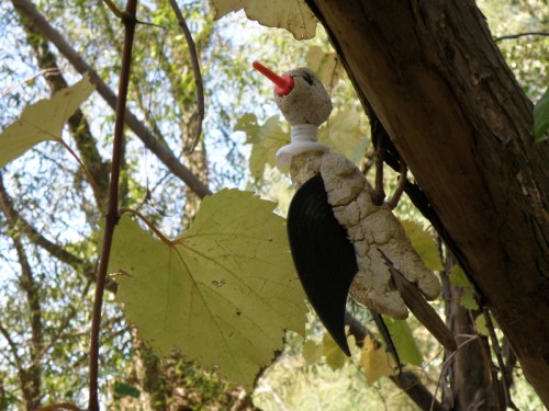 Returning to the sunlight seemed to do the trick of chasing the noisome insects away. I moved away from the shade of the trees and returned to the intermittent light by the fossil outcroppings nearer the riverbank. All was right with the world. A cormorant was swimming in the river as an osprey flew overhead with fish in talons. I was happily engaged in my little world…when I heard the most unusual animal call of all. I just had to find out what could make such a mournful noise! I found a likely spot along a trail and just went quiet and motionless. If the gods were with me then I had a good chance of seeing this mystery animal which was continuing its two-syllable call as it drew nearer to me.