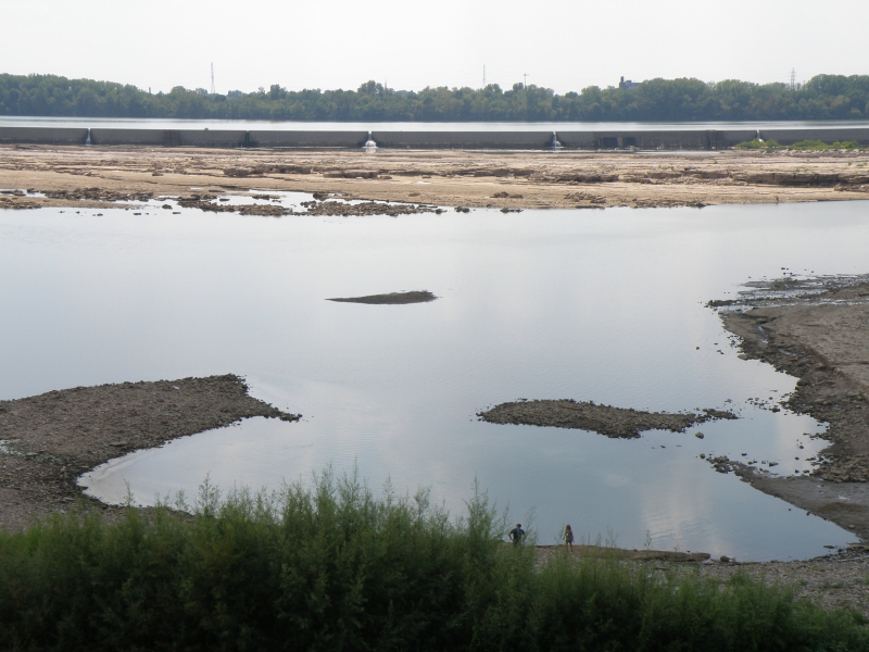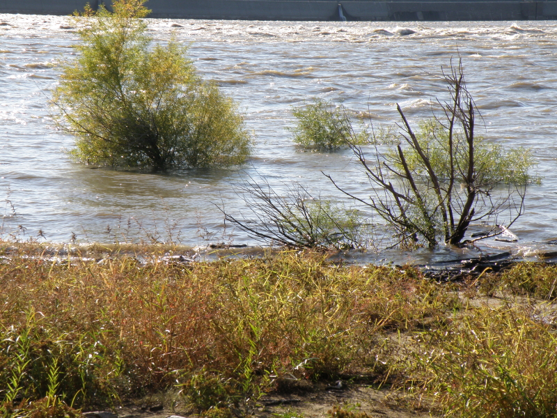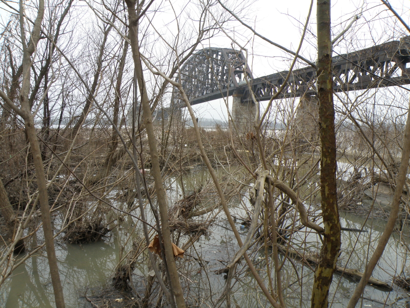 I am also on the alert for any bird movements or sounds in the area. On this expedition to the Falls of the Ohio I scored big by sighting two new bird species for my life list and getting decent pictures of both to show to any of you unbelievers out there! After walking in direct sunlight for over an hour, I decided to cool off by walking in the shade of the large cottonwood trees that grow along the edge of the river. I especially like the way this cottonwood tree fills the whole photo frame. When these trees release their fluffy, light seeds it can almost appear as though it is snowing in slow motion. The cotton fluff builds up and forms wind aided drifts on the ground.