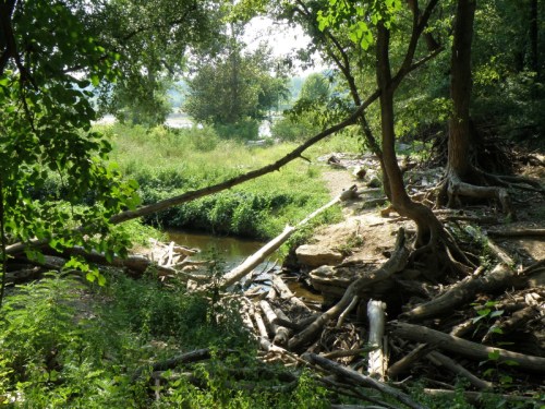 According to the WordPress folks, this is Riverblog post #450! They are much better at keeping count than I am and so I will trust them on that. I mention this not in the way of a boast, but rather from personal amazement that I have found enough content out in the Falls of the Ohio State Park to help keep it going! I have a good friend who is also an artist and he used to blog on WordPress. He stopped writing right around his 500th post! He became a little disappointed that it was so time-consuming and didn’t lead to more sales or artistic opportunities. I guess he also got to a point where he had said everything he wanted to say? This post will combine a couple of river adventures together and is set for the western section of the Falls of the Ohio State Park. It’s getting to be high summer. I can tell by the heat and the blooming trumpet creeper vines growing on some of the cottonwood trees. Have you ever noticed that many of these trumpet creeper flowers have large ants in them?
