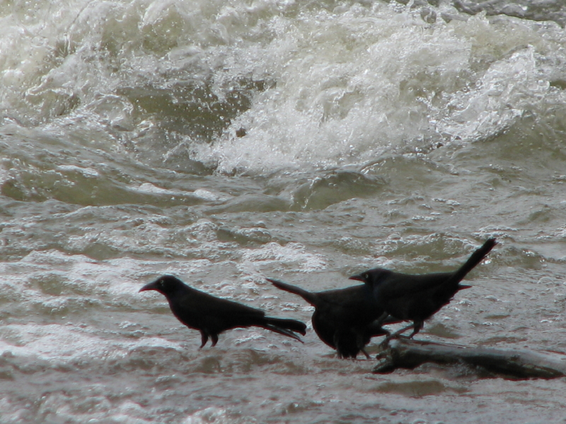 Earlier I had seen a flock of grackles by the water flowing under the bridge. They were catching some food item here that I wasn’t able to figure out what it was…perhaps dead minnows?