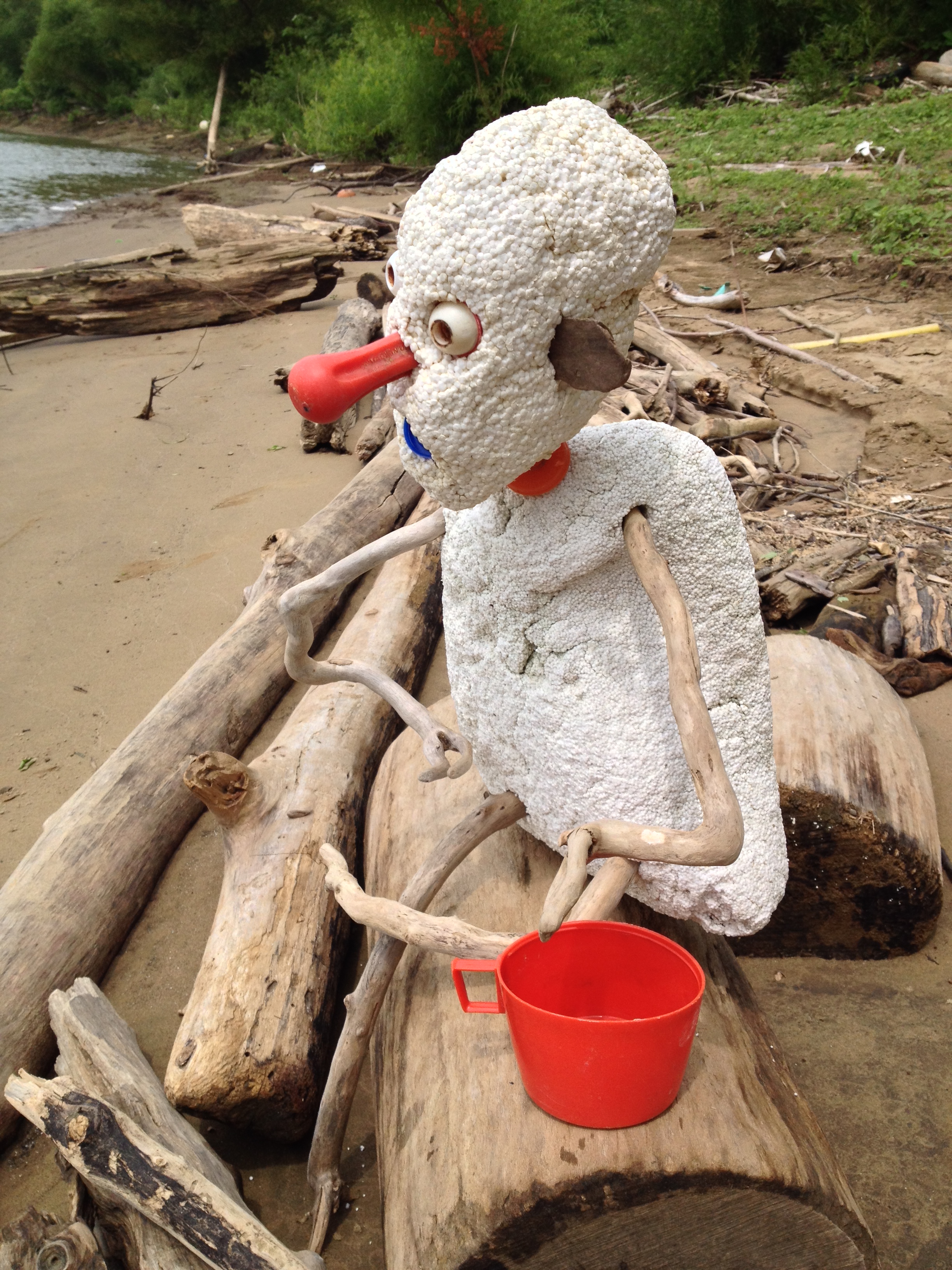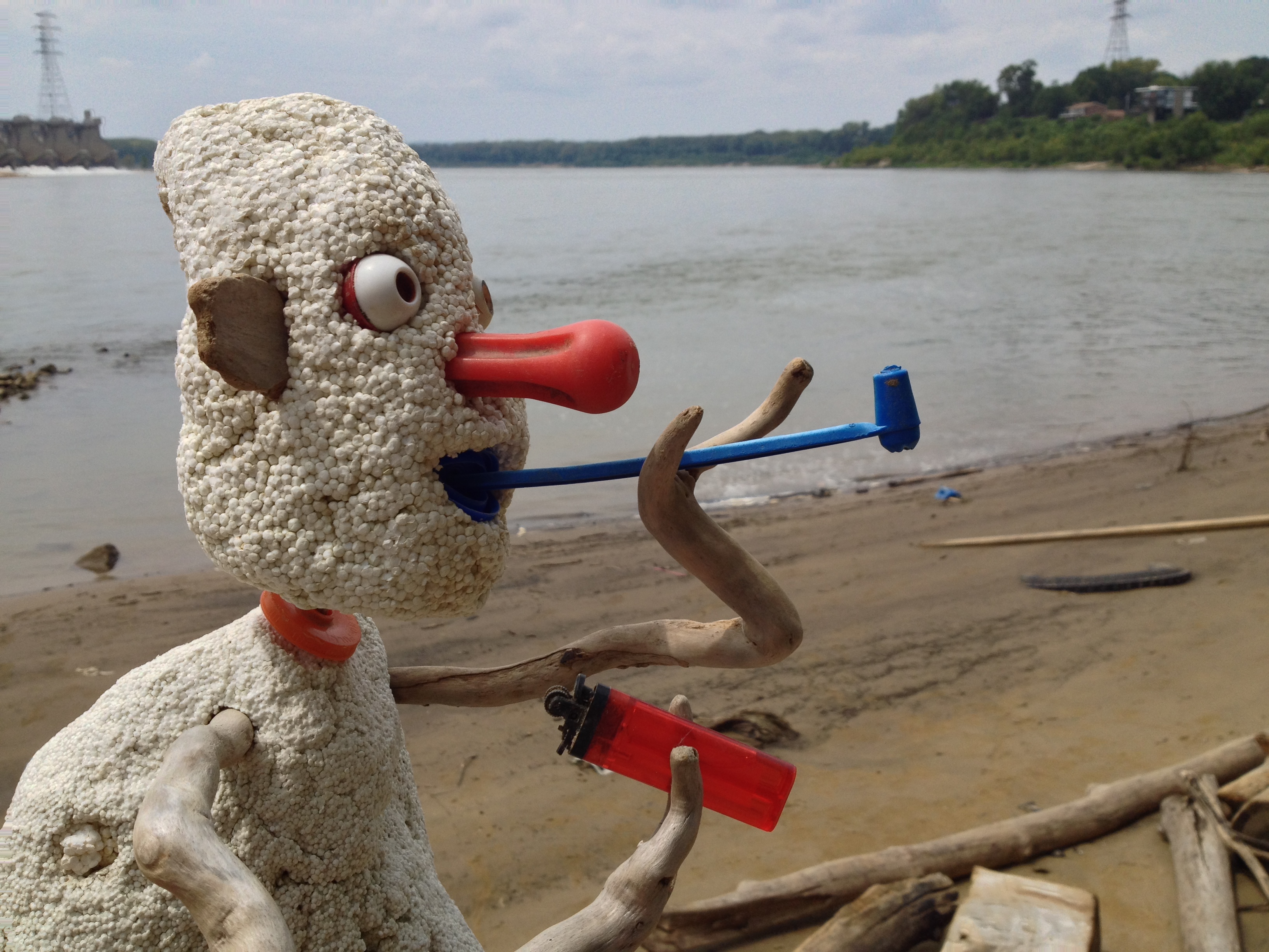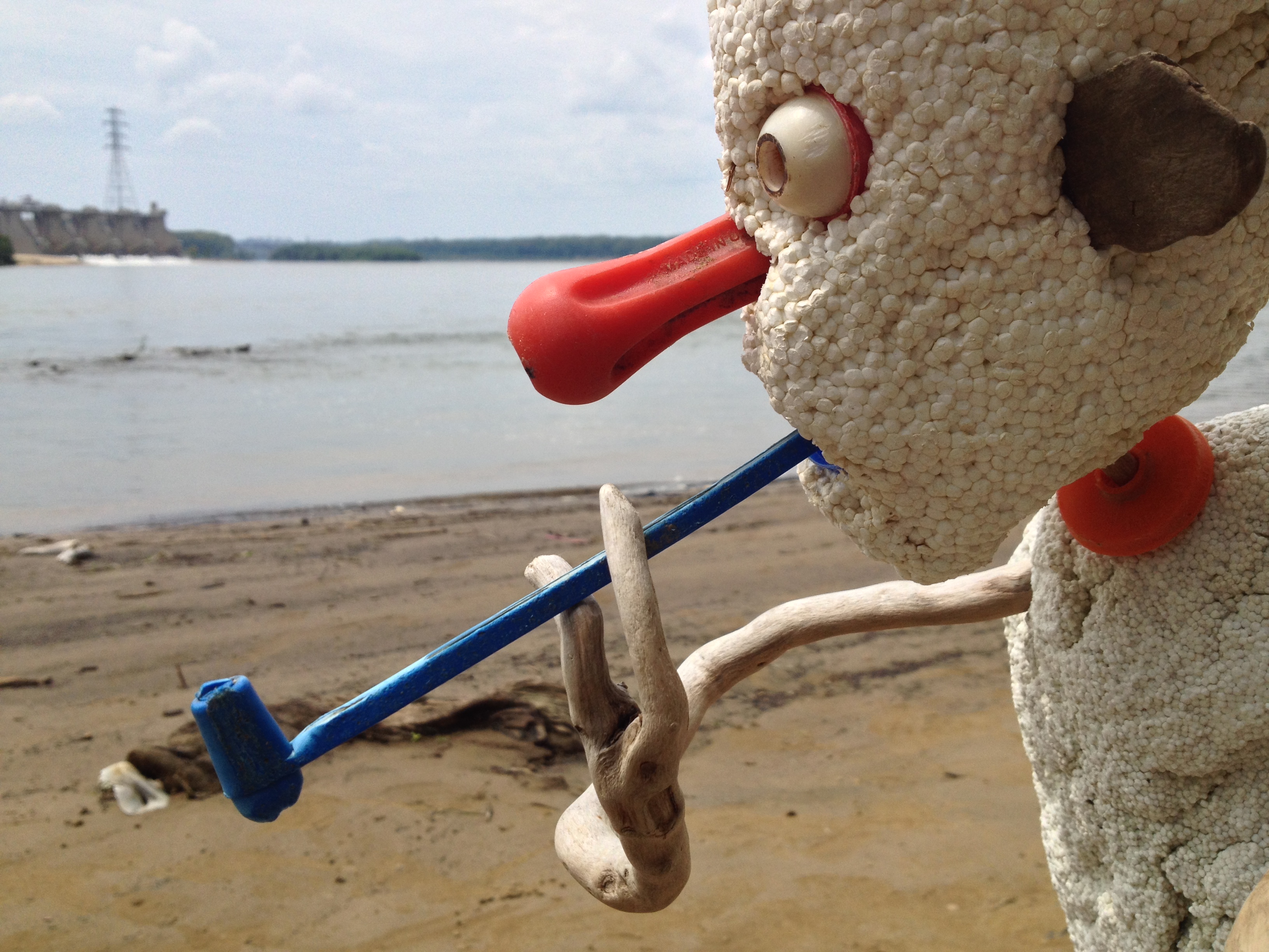 There was a movement low to the ground and a parting of vegetation when a dingy white bird emerged onto the trail in front of me. It puffed its body up and displayed its tail feathers in a showy fan. A few wiry blue feathers on his head forms a crest that moves and down with the hopping dancing motion this species requires for courtship. With a certain amount of fanfare, my first ever “Dodo of the Ohio” ( Pseudo dodo kentuckiana ) let itself be known that it was looking for companionship. I had also found it in the context of a flowering and fruiting Passion flower vine ( Passiflora ) growing over the sand. A pair of round, green fruits seemed to be the object of the dodo’s attention. Our dodo is not at all related to the extinct species, but it is far from being a common bird. Fortunately, it can fly, albeit weakly. This at least keeps it off the ground while it sleeps at night. I watched the dodo for several more minutes before it flew off. The chance meeting of these two exotics was an amazing and unforgettable happening that helped make July an incredible month. See you again sometime soon from the Falls of the Ohio.