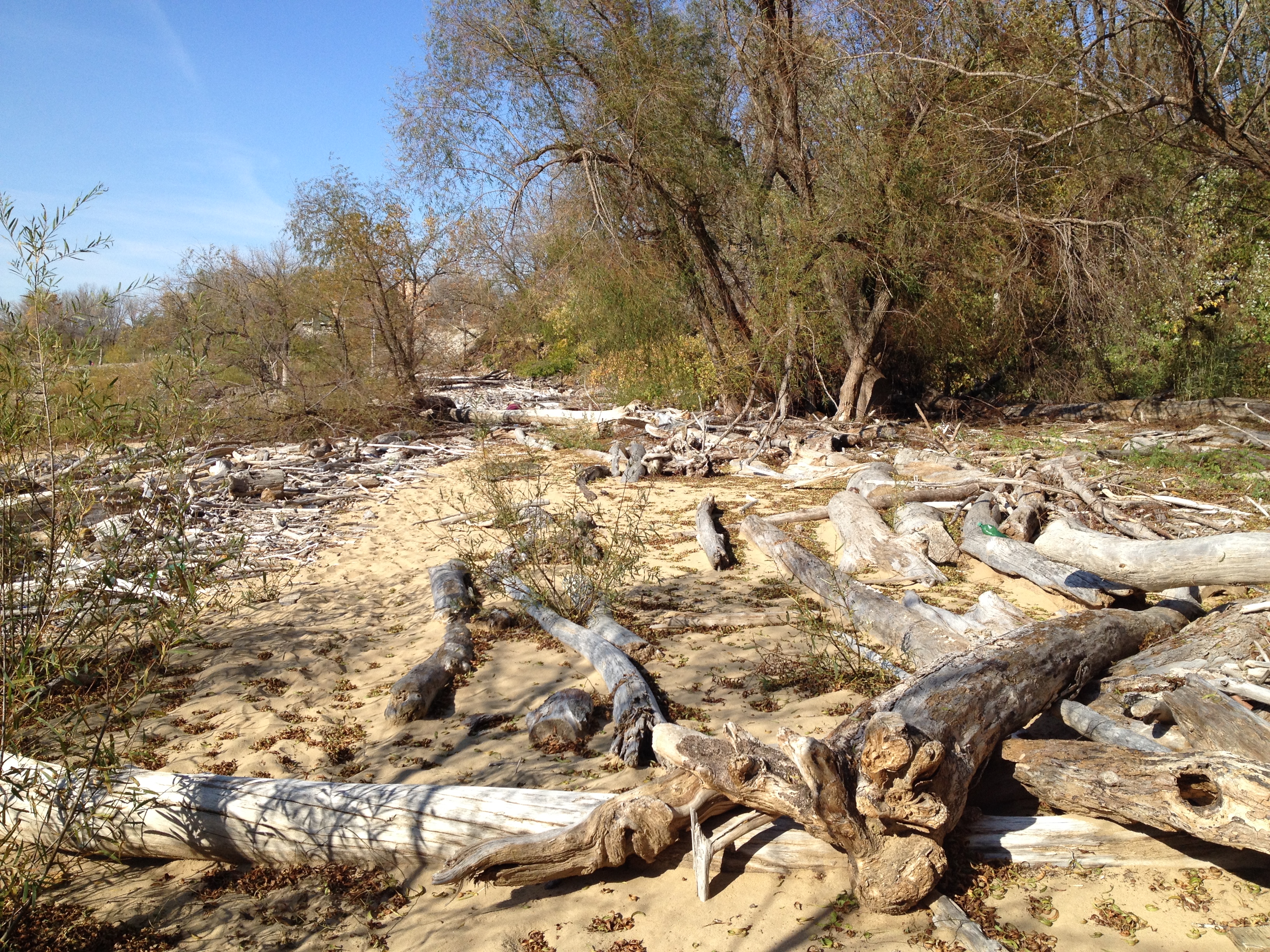 I am also on the alert for any bird movements or sounds in the area. On this expedition to the Falls of the Ohio I scored big by sighting two new bird species for my life list and getting decent pictures of both to show to any of you unbelievers out there! After walking in direct sunlight for over an hour, I decided to cool off by walking in the shade of the large cottonwood trees that grow along the edge of the river. I especially like the way this cottonwood tree fills the whole photo frame. When these trees release their fluffy, light seeds it can almost appear as though it is snowing in slow motion. The cotton fluff builds up and forms wind aided drifts on the ground.