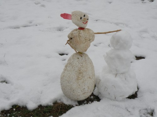 “Excuse me…I don’t mean to disturb or startle you, but do you mind if I ask you a question?” I’m sure I must have had that slack-jawed look of amazement on my face! The absurd looking persona in front of me was much taller than myself. I estimated he was at least 6 feet 5 inches or even slightly taller than that. Dressed all in white, he had a large nose and two eyes that were different colors on an otherwise huge head. Over one of his shoulders he was carrying a snow shovel that was missing half its snow blade. I did my best to gather my wits and replied in a slightly cracked voice…”Sure, what’s your question?” It’s not that unusual for people (especially children) who see me out here to wonder about what I’m doing?