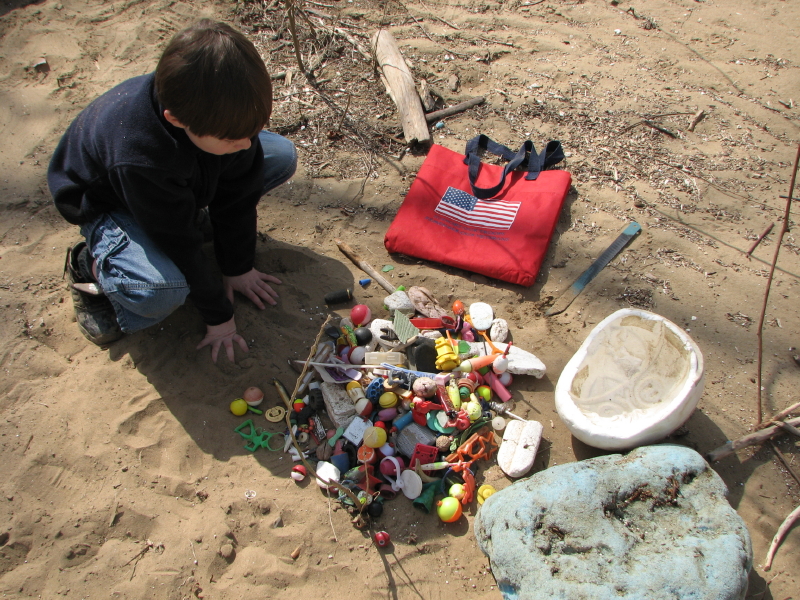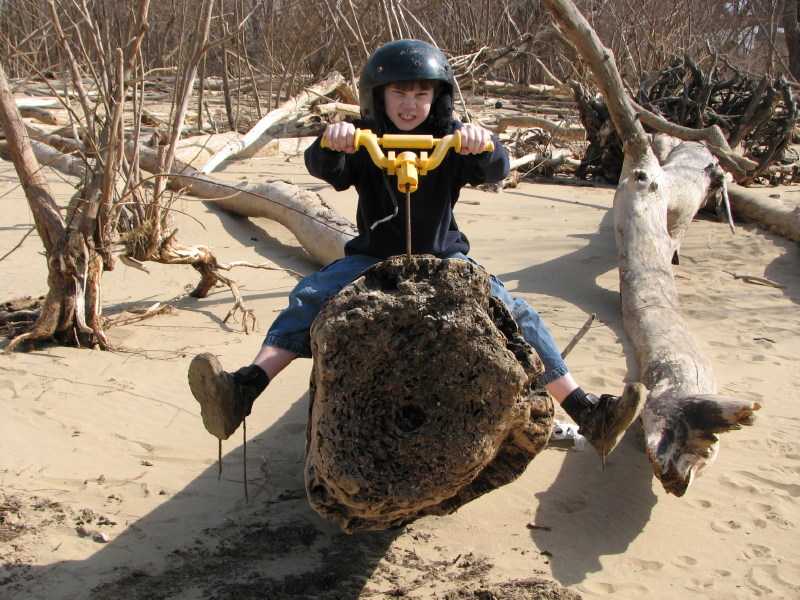 Adam asked me if I had a fort out here like last year? You know, the one with all the Styrofoam in it and if so, are we going there? Barely were the words out of his mouth when he walked into my studio site. Everything was as I left it except for the big helmeted figure which had fallen over. In a way, this piece has become the figurehead of my driftwood boat for this season and as my unofficial mascot I respectfully stood it back up.