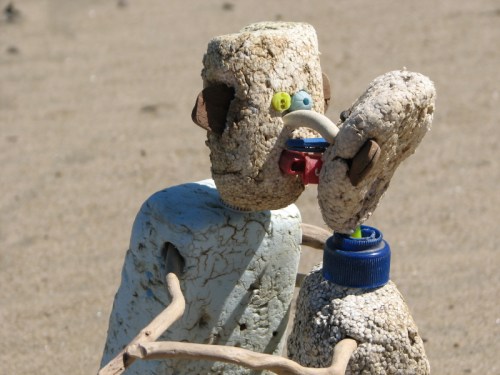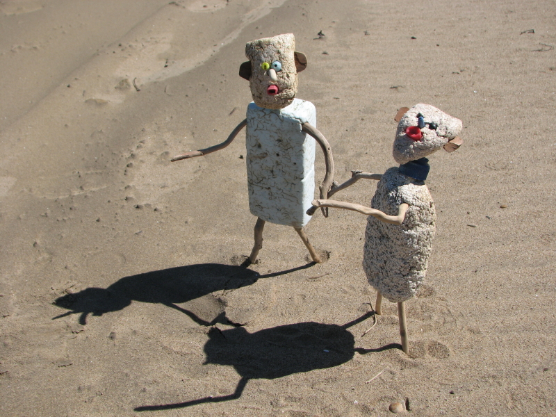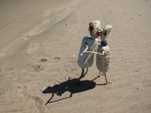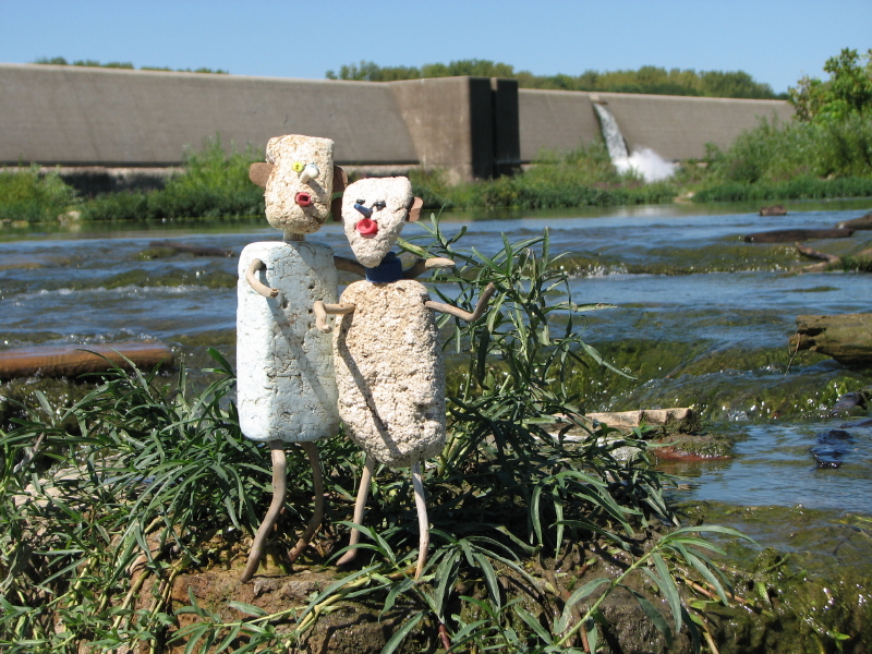 Goose Island has sandy banks. As I was wading along the southeast side of the island, I set up this figure with up raised arms in an open spot among plants that were growing in a row parallel to the water’s edge.