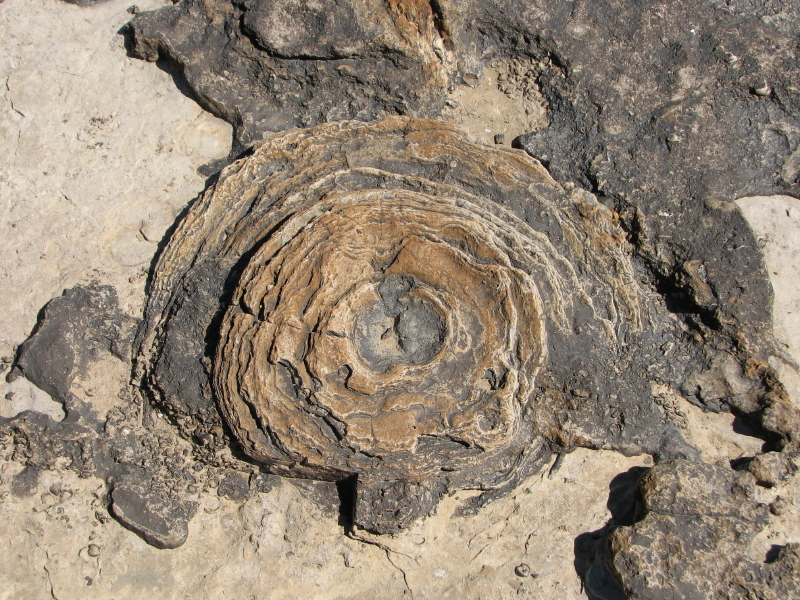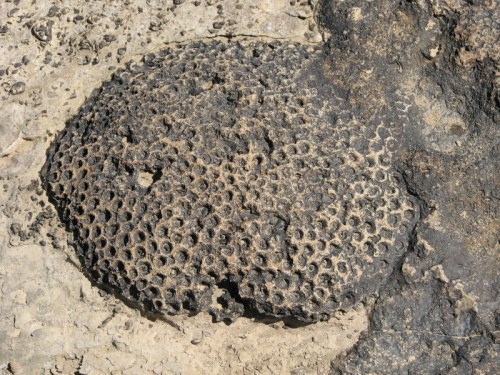 On the walk home, I kept walking by different fossil corals exposed in this ancient limestone. Corals are colonial animals and you get a sense for this in my next image.