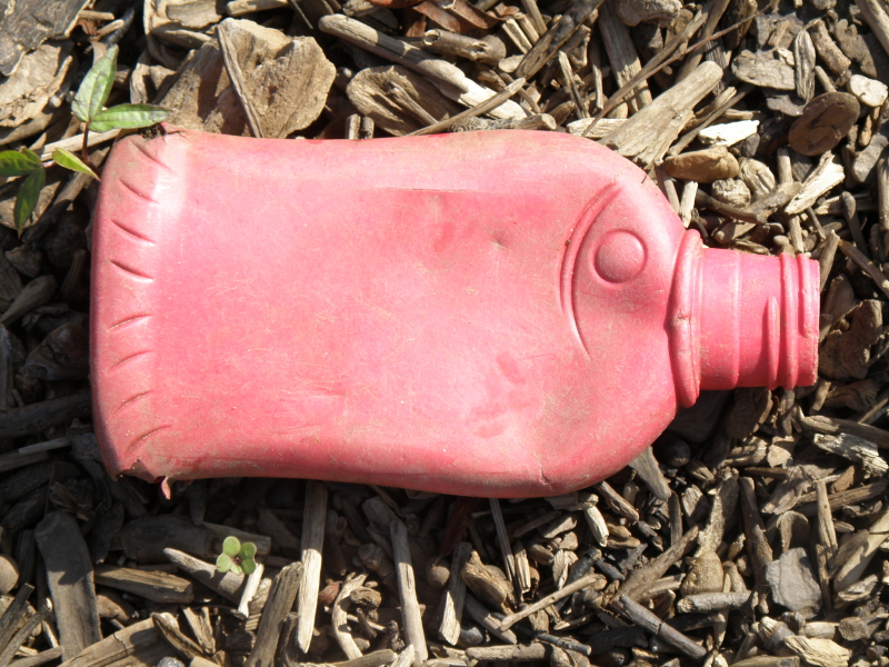 The second “fish” I came across was this plastic bottle. I’m guessing that the bottle may have contained shampoo for children? Regardless, I was struck by the level of abstraction occurring here. The tail is minimally represented and the gills are indicated by two lines near the eyes, but there is enough here to suggest a fish. My next find is mid way between the drum and the plastic bottle being closer to the latter than the former. Here are two views of it.