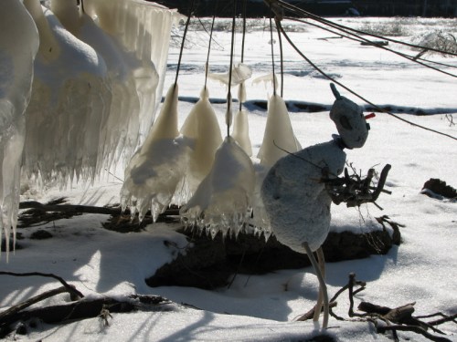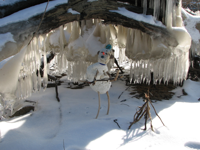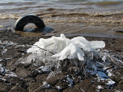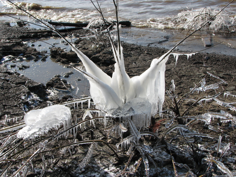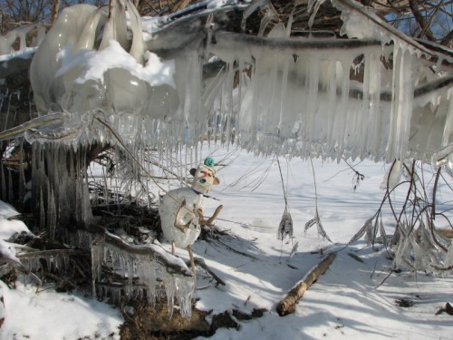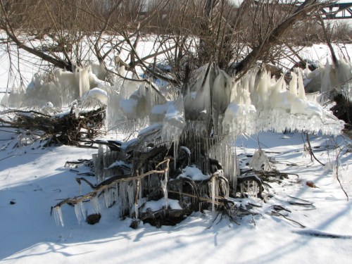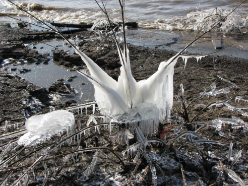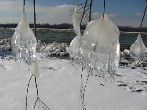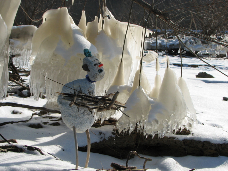 The sun was rising. The day was warming and the ice was beginning to drip and lose its strength. Today’s show was at an end. The image of a hot cup of coffee or cocoa was starting to have great appeal to me and so I said my farewell to the Ice Tourist. Perhaps we will run into one another again at the river…we shall see? Leaving my new friend behind, I walked the riverbank and could see that the Ring-billed gulls that had been absent during the polar vortex were once again in residence in the park. I wonder if the groundhogs will see their shadows tomorrow?