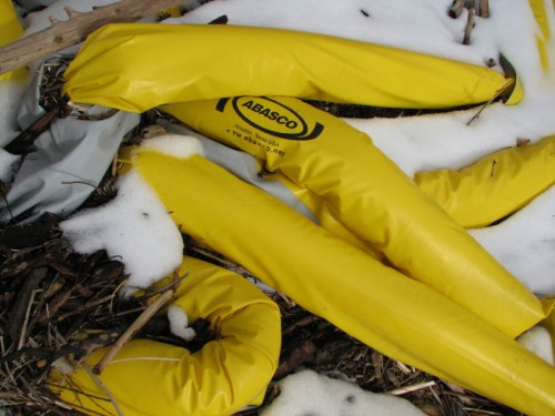 I did look up the company name on this object because I wasn’t entirely sure as to what this is or why it’s here.? I suspected that this is a boom used to contain or protect something from contamination. Like many people, the immense oil spill in the Gulf of Mexico has been on my mind. What a colossal failure of imagination this has been all the way around. I imagine that the company that made this yellow boom and is based in Houston , Texas is probably having a great year. Here are some recent images. The longer this boom stays here, the more it seems to catch things around it.
