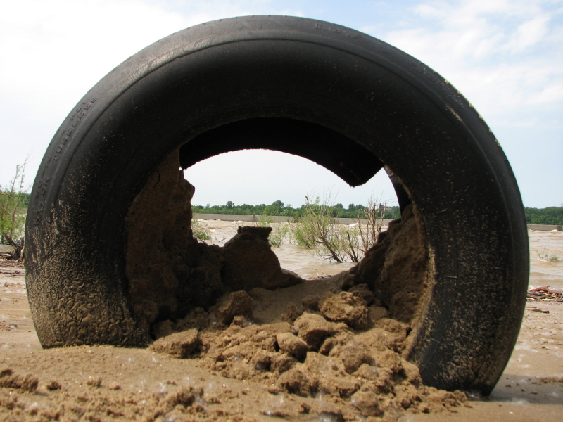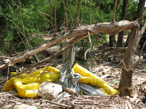 It is ironic that something that is supposed to be a tool to “protect” the river, winds up becoming another discarded piece of junk. What is one supposed to do with this boom now? I’m assuming that this was used somewhere along the Ohio River or its tributaries which eventually flows into the Gulf of Mexico. This boom’s appearance here suggests that the Gulf and the river were already in trouble long before the latest oil spill.