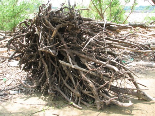 String enough trees with their root masses holding things together and you have the beginnings of an ecosystem. The relationship is one of symbiosis. When I see trees that have been uprooted like this I imagine that the riverbank it once helped to support has been weakened and degraded in some way. We see a lot of erosion around here and it isn’t just the river’s fault.