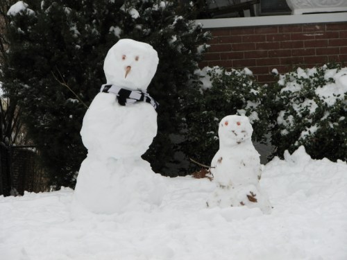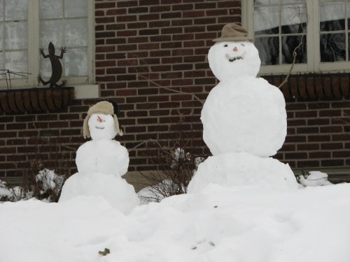I like that there is a time limit to a snowman’s existence. For as long as the weather remains cold, and people leave it alone, then the work will be around to bring a little joy to all who see it. For many adults, it is a pleasant reminder of childhood winters with its promise of missed school days. Around here, the temperatures are dropping into the single digits overnight and there is more snow on the way. For the time being, the city’s snowmen are safe and in good company.