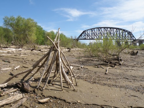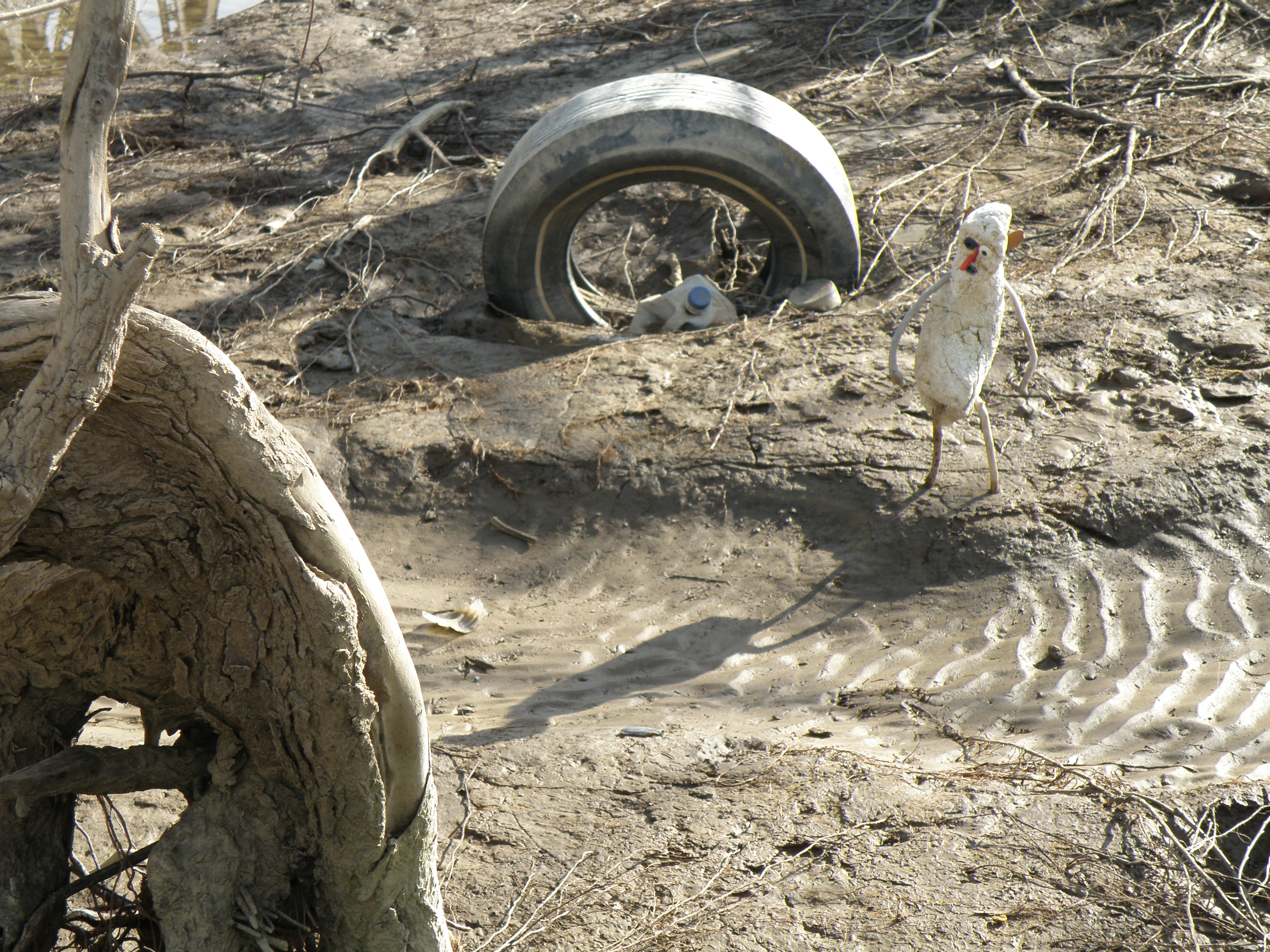 This is Chiel Kuijl who is visiting from the Netherlands and is at the time of this writing the current Artist at Residence at the Bernheim Arboretum and Research Forest in Clermont, Kentucky. I ran into him the day the Heisenberg’s Hammerkopf was spotted out at the Falls. Chiel is creating a site specific work at Bernheim using rope to create an elevated space that people can explore. He needed some interesting pieces of wood for his installation and the Falls of the Ohio State Park is a great place for that. I have had the chance to interact a little bit more with Chiel so far and look forward to his finished project and hanging out with him more. Oh, Tasmania was visited early on by Dutch sailors who help put it onto the world’s map. Holland has a great seafaring tradition and I wouldn’t doubt that some of Chiel’s skill with ropes and knots is a part of that heritage. One more artist to talk about before closing…