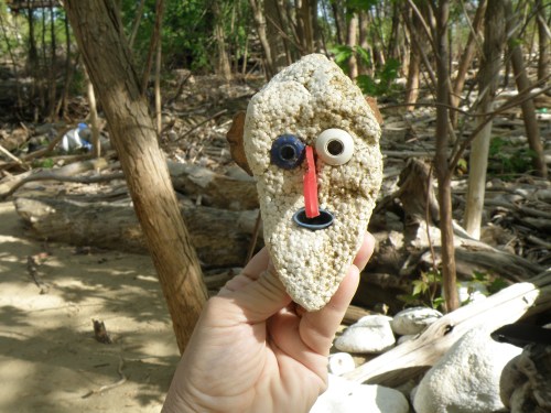 Walking along the riverbank in the eastern section of the park…I spied a soggy and muddy purse at the water’s edge. Investigating further, I could see that there was a wallet and checkbook inside and so I opened up the wallet to see if the owner’s name could be found. As it turns out, this person’s credit cards, insurance cards, driver’s license, etc…were all still there. I took the muddy purse home and called the person whom it belongs to and she was thrilled that her purse had turned up somewhere. She had given it up for lost after someone had broken into her home a week before and took the purse along with a few other electronic items. The thief who broke into and entered her home only took the seven dollars in cash she had and then threw the purse into the river. The elderly woman whose purse this is was most anxious to get back the family photos she kept in her wallet. Included among them were precious black and white photos of her own parents that could not be replaced. Since the owner lived in Southern Indiana we met the following day at my place of work in New Albany and I gave her property back to her. That certainly was my good deed for that day. Here’s another lost and found item I’m posting just for fun. First, here’s how this object appeared as I came across it.