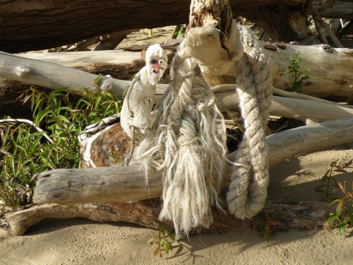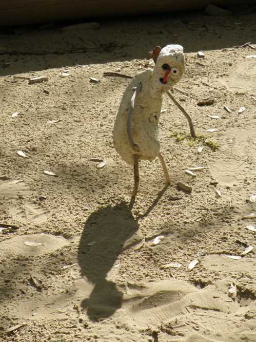 On first blush…I recoiled slightly because I associated the brown fur with a dead animal. I have found several dead deer out here this year and if this was that…I wanted nothing to do with it. Looking more closely and since few animals are this uniformly brown I could make out that it was synthetic fur and not the real thing. So, I reached down and lifted the mystery object from its sand, mud, and wood chip debris matrix to reveal…
