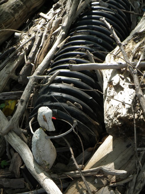 Crushed and mix among all the other debris is the remains of what was probably a child’s Easter basket. Although a novel item, I can remember in “my day”, the colorful wooden baskets worked just as well as the plastic ones, but without the long-term ramifications. Interestingly, this plastic basket “mimics” the texture of an actual wooden basket. Here are a couple of “egg-related” images to enjoy.